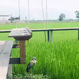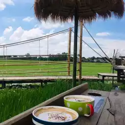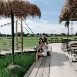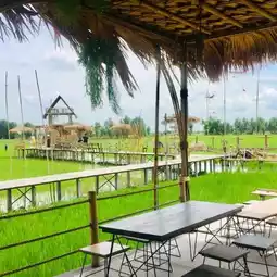 @Baan Rak Na Cafe, Ayutthaya Province, drive from Bangkok for less than an hour, sip coffee, sip cold drinks, and enjoy the green rice fields. Here, there are many food and bakery items to choose from, including souvenirs to take home. The shop is open and airy, no air conditioning, but the wind blows all the time.
