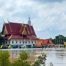 It is located on the banks of the Chao Phraya River. When you look across the river, you will see the prang and pagoda of Wat Phutthaisawan, which are located on the opposite bank.