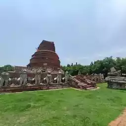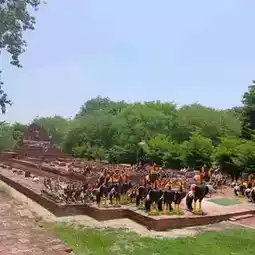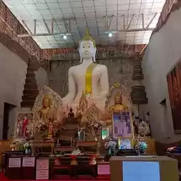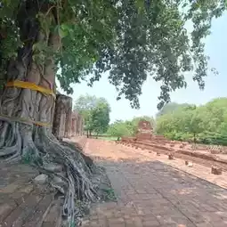 🛕🛕 Here we will find ancient sites such as round pagodas surrounded by lion statues, which are rarely seen because we mostly see elephant statues. In addition, there is also a white Buddha statue and an old temple for you to walk around and see. Next to it is a large Bodhi tree that provides shade for you to sit and rest.