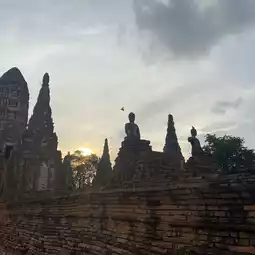 Wat Chaiwatthanaram is famous for its towering pagodas and exquisite Buddha statues. The center of the temple is a tall pagoda, which originally had a golden Buddha statue on the top. The pagoda is surrounded by 120 seated Buddhas, each of which is exquisite, but after the invasion, only the damaged Buddha statues are left.