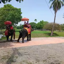 🛵🐘If we walk out to the front, we will sometimes see elephants walking by. There are also tourists on elephants because there is an elephant camp nearby.