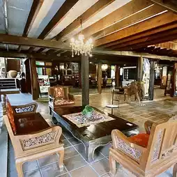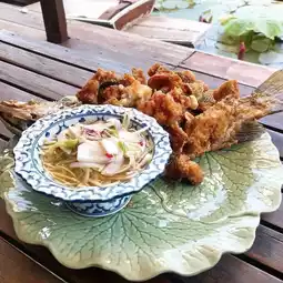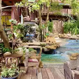 Ambiance/Facilities - Unique decorations, in a Thai unique house, friendly and relaxing environment on looking at the pond, green garden.
