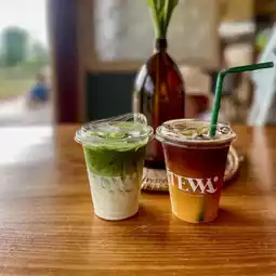 Highlights - Hot cappuccino coffee and matcha with orange juice, reasonable prices.