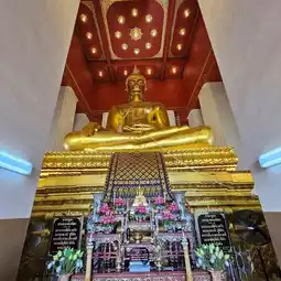 This is another old temple in Ayutthaya Province. It was renovated again during the reign of King Rama IX. It was renovated and gilded to make it beautiful in line with the era. Inside the chapel, there are various amulets and amulets from the early Ayutthaya period displayed in a cabinet so that we can see the past and pay our respects. There are many places to make merit here. You can do it according to your preference.
