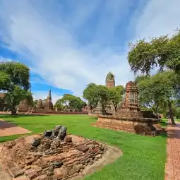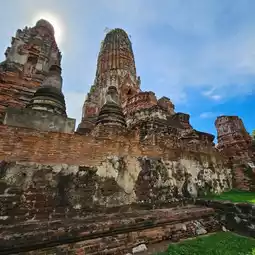 An ancient site from the early Ayutthaya period, located outside the Grand Palace on the east side, near Bueng Phra Ram in the heart of the city, opposite Wihan Phra Mongkhon Bophit, Tambon Pratu Chai, Amphoe Phra Nakhon Si Ayutthaya, Phra Nakhon Si Ayutthaya Province. It is a large and spacious temple with a large prang that can be seen clearly from afar. The prang is made of bricks and mortar (mortar is used to connect bricks or stones together). It is an early Ayutthaya architecture that prefers to build prangs as religious buildings because it was influenced by the ancient Khmer style from the city of Lavo (Lopburi). Currently, only ruins remain. The history of the temple is mentioned in the Royal Chronicles that “In the year 731 of the Rooster year (1369 CE), in the year 1912 BE, Wat Phra Ram was built. In that year, King Ramathibodi I (King U Thong) passed away. From the aforementioned records, it can be stated that Wat Phra Ram was built during the reign of King Ramesuan to enshrine the remains of King U Thong (his father), the first king of Ayutthaya. And this area was once the place where King U Thong's body was cremated.