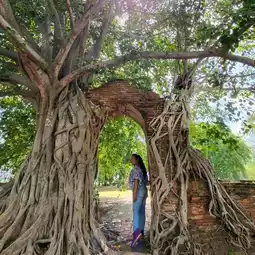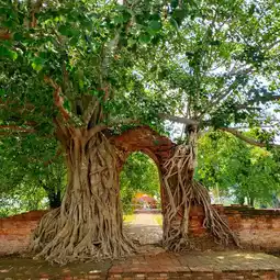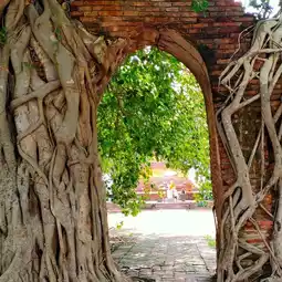 It is an archway made of hundreds of bricks arranged together. What is even more amazing is that there is a large Bodhi tree surrounding the entire archway, which is considered another popular tourist spot in Ayutthaya.