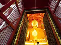 Luang Pho To, a Buddha statue in the late U Thong art style in the Mara-Vijaya posture, sits in a cross-legged position, with a lap width of 14 meters and a height of 19 meters, beautifully lacquered and gilded. In addition, Luang Pho To is one of the most respected Buddha images among the Chinese people. It is called Sam Po Kong in Chinese, which is why many believers travel to pay homage.
