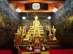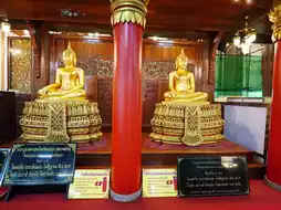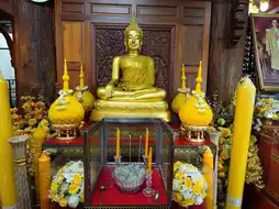 In addition, there are 3 important Buddha images: a golden Buddha image, a cement Buddha image, and a naga Buddha image. The golden Buddha statue is a Sukhothai-style bronze Buddha statue with a lap width of 3 cubits and a height of 4 cubits. It is gold in color. The central Buddha statue is a stucco Buddha statue from the Ayutthaya period with a lap width of 4 cubits and a height of 5 cubits. The Naga Buddha statue is a Sukhothai-style Buddha statue with a reddish color and a lap width of 3 cubits and a height of 5 cubits.