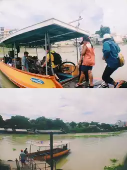 Our journey that day was by train from Bang Sue Station with a ticket price of only 20 baht and a ferry for 5 baht. Then, there will be a bicycle and motorbike rental shop. You can choose whichever one you are comfortable with.