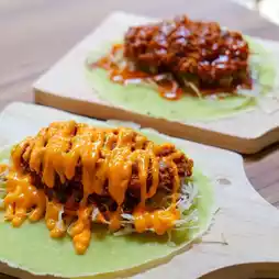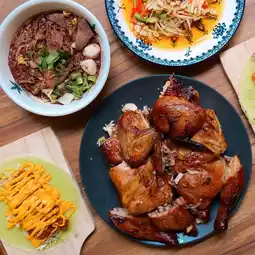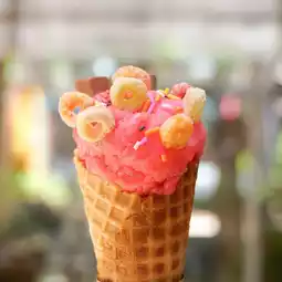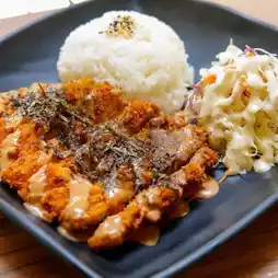The cafe serves both savory and sweet dishes. The food is both Thai style, such as boat noodles, papaya salad, grilled chicken with the shop's special recipe, or Japanese style, such as Tonkatsu, curry, and another menu that Fern likes, 'Fried chicken with sauce wrapped in roti dough', which is the most creative menu. It's delicious and goes well together. Let's move on to dessert. There are taro bua loy ice cream, mango sticky rice, drinks, and various bakery items. The food here is really delicious, I can confirm it.