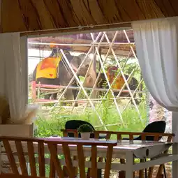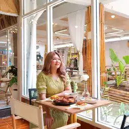 #VisitAyutthaya Last weekend, I had a plan to visit Ayutthaya, so I pinned a famous landmark, Ayothaya Floating Market. Fern hadn't been there for many years, and then I found a secret cafe hidden in the floating market, Ayothaya cafe, Ayothaya. It's a Bali-style cafe that combines Thainess. The cafe has both indoor and outdoor zones. In the cafe, there is a corner where you can see baby elephants. Eating while watching baby elephants is quite enjoyable.