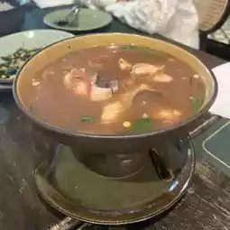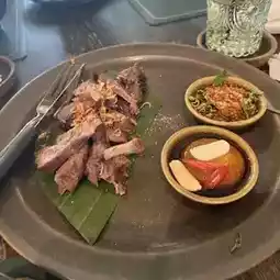 The food is delicious and very hard to find, such as Gaeng Ranjuan, an old royal dish that I have seen from a Thai drama from the past. I just tried it for the first time. It is similar to Tom Som mixed with Gaeng Som, with the smell of shrimp paste, basil and many spices mixed together. It is very delicious. Khao Mak with shrimp fat is delicious. The taste is well-rounded and the smell of shrimp fat is fragrant. Grilled pork tongue with a unique dipping sauce, similar to salted egg yolk (not cooked). It is creamy and eaten with Jaew sauce. It has a variety of textures and is delicious. River shrimp with juicy shrimp fat with 3 dipping sauces, sweet/sour and fragrant from shrimp fat.