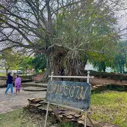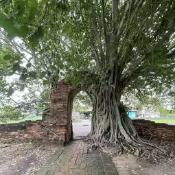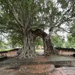 Wat Phra Ngam is an Unseen Thailand location. The highlight is the Bodhi tree archway, which is over a hundred years old. If you come during sunset or sunrise, you will see golden light shining through the archway. Inside, there is an ancient church and a beautiful old Buddha statue.