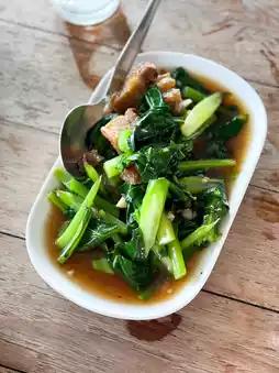 #KaleAndCrispyPork 120.- I liked this dish, it was spicy and the crispy pork was very delicious.