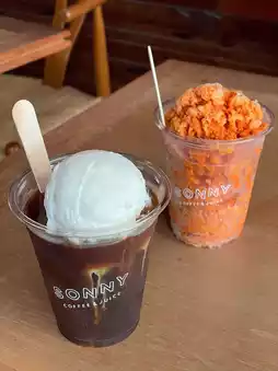 🖤 Another menu I ordered was Black Sonny Coffee (145฿), an iced Americano. But what's special is that they add coconut ice cream. It's fun to eat. It's a good way to cut the bitterness of coffee.