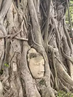 Atmosphere/Location - Wat Mahathat is located in the Ayutthaya Historical Park. This is the most important religious center in Ayutthaya because it is the temple that enshrines the Phra Borommathat in the heart of the city and is also the residence of the Supreme Patriarch of the Khamwasi sect. It was built during the reign of King Borommarachathirat I, Khun Luang Pha Ngua, and was completed during the reign of King Ramesuan. The important point in the temple is the Buddha head in the roots of a tree that is over a hundred years old. The roots of the tree have spread and covered the entire wall, and some of the roots have surrounded the Buddha head. This is another Unseen Thailand spot.