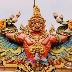 A temple built by King Ekathat, the last monarch of the Ayutthaya Kingdom, and also has a sacred Maha Udom chapel for worship and prayer. The principal Buddha image made of white sandstone sits in the Mara-Vijaya posture during the Ayutthaya period. After the fall of Ayutthaya for the second time, it became a deserted temple before being restored and renovated to become a place for monks to reside. At one point, the head of the principal Buddha image was stolen by thieves who cut off the head to sell. When the villagers found out about this, they wanted to repair it, so they went out to search for a replacement Buddha head. By chance, they found a head of a Buddha image that could be assembled into the principal Buddha image perfectly. Importantly, the mouth of the Buddha head that was obtained has a shape called the Garuda's mouth, which is similar to the name of the temple, so this principal Buddha image is called Luang Pho Krut.