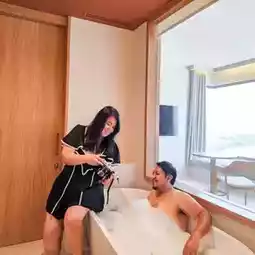 The room is spacious. I like the wide glass corner that lets in a lot of light. And can see the view very far. The room has complete facilities. The bed is very soft and comfortable.