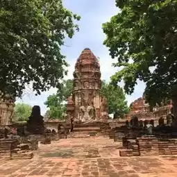 🛕 Inside the temple, there are interesting things for tourists to admire, such as the octagonal pagoda, the large prang, the medium-sized prang, and the sandstone Buddha statue.