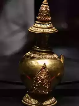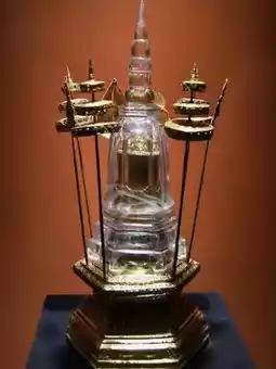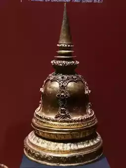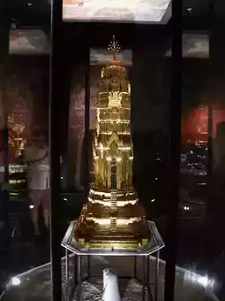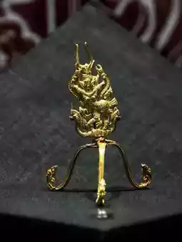 The museum’s most important antiques include a golden dagger measuring 115 cm long and 5.5 cm wide, from the Ayutthaya period, which was unearthed from the underground chamber of Wat Ratchaburana. The golden Phra Tao Thatak is 2.7 cm in diameter and 18.5 cm in height. It dates from the Ayutthaya period and was unearthed from the underground palace of Wat Ratchaburana. Gold-clad elephant, 15.5 cm long, 12 cm high, from the Ayutthaya period, from the underground palace of Wat Ratchaburana.