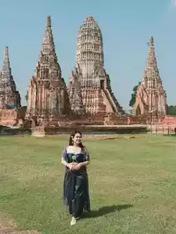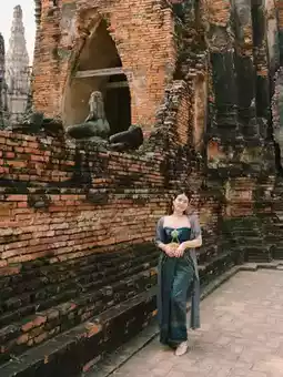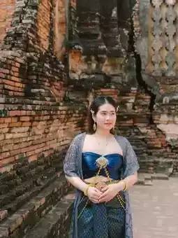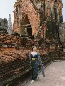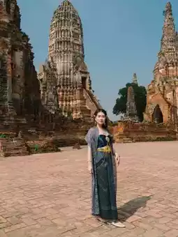 ❤️Start by transforming into a Thai costume. In front of Wat Chaiwatthanaram, there are many shops to rent Thai costumes, complete with makeup, hair and props.