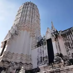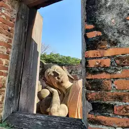 Wat Phutthaisawan is located outside the island city, in the area of Samphao Lom sub-district, Phra Nakhon Si Ayutthaya district. It was a place for swordsmanship and magical training in the past and has been mentioned in many dramas over time. The temple was favored by King U-Thong, who ordered its construction on the site of his former royal pavilion during his migration to Ayutthaya before the establishment of Ayutthaya as the capital in 1893. The symbol of the temple is the Great Stupa or the main prang, influenced by Khmer art, resembling a corn cob. Other interesting features include the Phutthaisawan Chapel (Reclining Buddha Hall), which now only has walls and the reclining Buddha image, the ordination hall, the residence of the Buddha's chief disciples, the monument of five kings, wall paintings, and more.