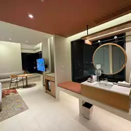 Let me tell you that there are many types of rooms to choose from, both regular rooms and luxurious suites. Every room comes with a city view and complete facilities!