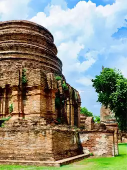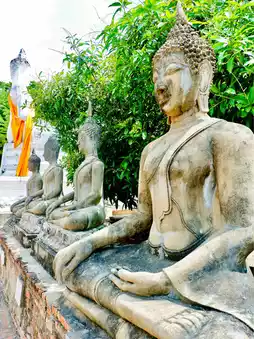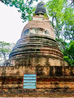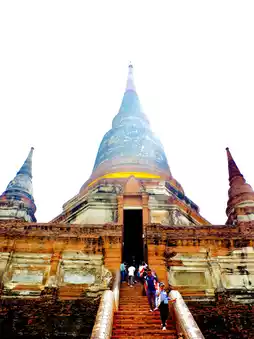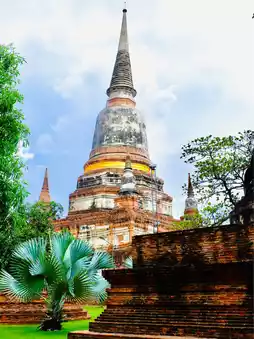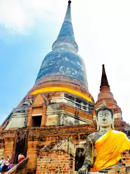 Wat Yai Chai Mongkhon is a beautiful temple off the historical island. Hihglights are its 60 meter tall bell shaped chedi and a large Reclining Buddha.