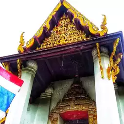 🏰 During the reign of King Borommakot, the temple was expanded with additional external columns and a teakwood gable carved with the image of Narayana on Garuda, stepping on Naga's head, flanked by Rahu figures.