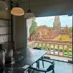 A premium homestay with a view of the world heritage of Ayutthaya, located opposite Wat Mahathat. There are 4 types of rooms in total, decorated in a modern Thai style.