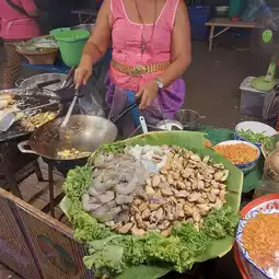 In terms of food, there are many to choose from. There are so many that you won't know what to choose. But most importantly, the price is not too expensive. The price is very cheap. For those who want to come, I recommend going to the Ayutthaya Night Market page first to see which days they are open. But let me tell you in advance that it is closed on Saturdays, Sundays, and Fridays at night are very crowded. I went with my friends and it was very difficult to find a place to sit and eat because there were quite a lot of people. The tables were always full.