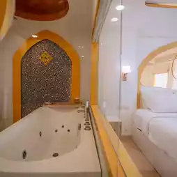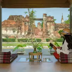 There are only 3 rooms here. They are decorated in white tones contrasting with Thai patterns. The rooms are spacious, have a sitting area with a view, a bathtub, and a view of Wat Mahathat in every room. As for breakfast, they will serve you a set in your room so you can sit and enjoy the view, eat your meal, and soak in the morning atmosphere. Importantly, this place also offers a hot spring bath to restore your body. With a great location like this, get ready to pack your bags and travel to Ayutthaya.