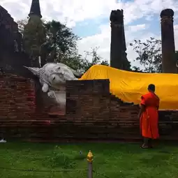 Visit the old city of Ayutthaya. I recommend this place. Wat Yai Chai Mongkol is a temple of historical significance. It was built in the early Ayutthaya period. It has the largest pagoda in the Ayutthaya Historical Park. Inside the chapel is a sacred object, Phra Chai Mongkol.