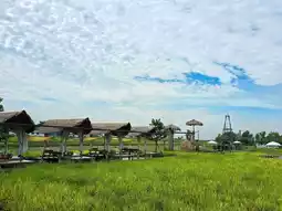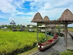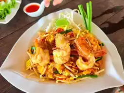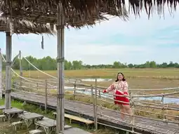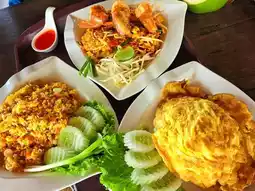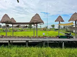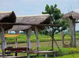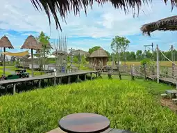 With a rice field area, when you enter, there are both Thai restaurants, Pad Thai with fresh shrimp, rice with curry, noodles, fresh coffee, and various desserts.
