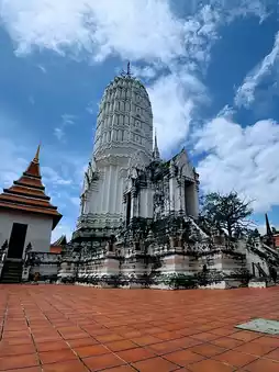 Wat Phutthaisawan is a large and famous royal monastery located on the west bank of the Chao Phraya River. The parking lot is spacious, with a chapel and a reclining Buddha behind the temple.