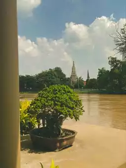🪴 Hello everyone, today I will be reviewing Siyama Ayutthaya Restaurant. This place is located by the riverside, offering a beautiful view of the temple. It’s a great spot with food, drinks, and bakery items.