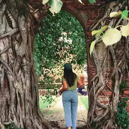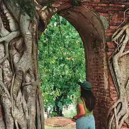 Wat Phra Ngam is an abandoned temple outside the island of Ayutthaya. Its highlight is the "gate arch" that is surrounded by Bodhi trees for more than 100 years. The beauty of the doorway in the afternoon will receive sunlight through it like a doorway through time.