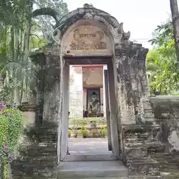 Inside the chapel is enshrined Phra Phutthanimit Mongkhon Sri Rattana Trai or what the villagers call "Luang Pho Khao". Luang Pho Khao is a Buddha image in the Mara-Vijaya attitude. His face is smiling and he looks very beautiful. The Buddha image is completely white. Only his hair is black. It is believed that Luang Pho Khao was built in 1920 at the same time as Wat Mae Nang Pluem. This temple has a door in the middle where when you look straight through the door, you can clearly see Luang Pho Khao enshrined.