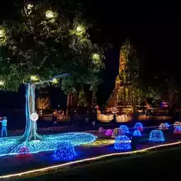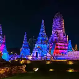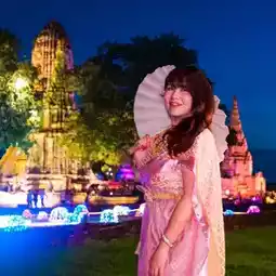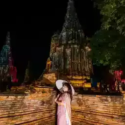 ✨Wearing Thai fabric and a shawl, inviting you to experience the beauty of 5 ancient sites at night in Ayutthaya Province, with lights, colors, and decorations. Ready to see the beauty of temples and palaces from an angle that many people may never have seen