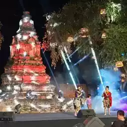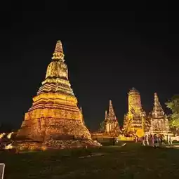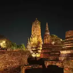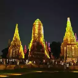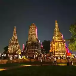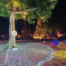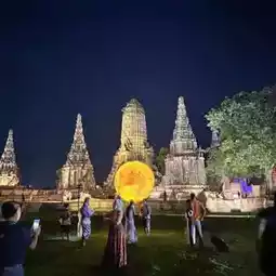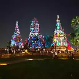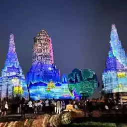 Phra Nakhon Si Ayutthaya Province takes you back in time to the beginning of the Ayutthaya Kingdom from November 9-17, 2024. Enjoy the projection mapping and lighting installation art performance. See the beautiful and stunning ancient sites at night decorated with magnificent lights. It's like going back in time. Watch the performance. There is also a retro market in the event. Invite you to wear a chong kraben and a shawl and walk around the event. 🟠 4 temples