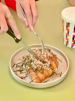 🥐 Takoyaki Croissant It feels like eating a full bite of takoyaki with the aroma of croissant dough, goes very well with seaweed and takoyaki sauce. Sprinkle with dried bonito flakes to add another fragrance. Everyone who tries it says in unison that it is delicious! 10/10