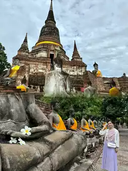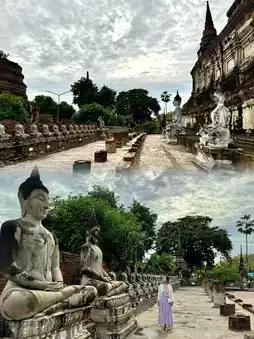 Visiting Wat Yai Chai Mongkhon early in the morning is an unforgettable experience. The peaceful atmosphere, before the crowds arrive, lets you fully appreciate the temple's beauty and history. The towering chedi, surrounded by rows of serene Buddha statues draped in saffron robes, is particularly stunning in the soft morning light. Climbing up the ancient chedi is a must—not only for the sense of accomplishment but for the incredible views of the temple grounds and surrounding greenery from the top. The tranquility and charm of Wat Yai Chai Mongkhon at dawn make it one of Ayutthaya’s most magical spots to explore.