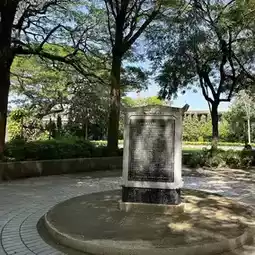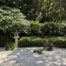 There is a Japanese garden decorated to make you feel like you're really in Japan.