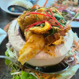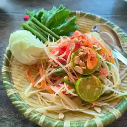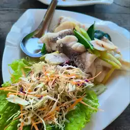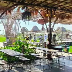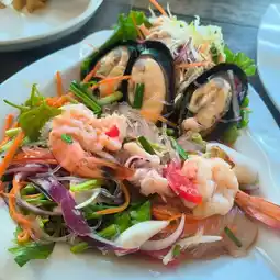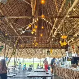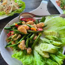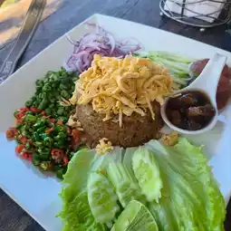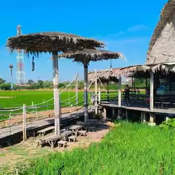 Food & Restaurants - There's both a cafe and a restaurant on site. The cafe is self-service while the restaurant provides table service. The Thai food is authentic and reasonably priced. If you're only here for drinks, you can buy a package of two beverages and sit in one of the wooden Thai houses above water. On the day we went, 1 kg of grilled shrimp was 800 Baht. Don't miss out on their signature drink as well! It's a combination of Americano coffee and green tea.
