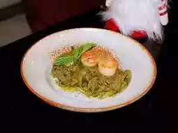 1. Fettuccine with Pesto Sauce and Scallops 279 baht