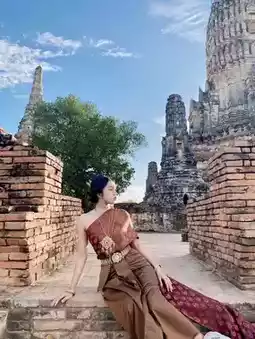 Wat Chai Ayutthaya, wear Thai clothes to take pictures. Don't dress up from home, there is a place to rent clothes near the temple. One set including hair styling is 300 baht, the price is not too expensive, acceptable. A historical place with many historical stories, plus the pictures come out very beautiful. And most importantly, it's not far from Bangkok, just an hour's drive. It's worth coming. #trip #beautiful photo spots #places to visit near Bangkok If anyone can't think of anywhere, Ayutthaya is definitely the answer.