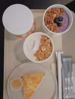 This shop focuses on freshly baked pastries, especially croissants that are baked all day long. Inside the shop, there is an open kitchen for customers to watch the baking process up close. There is also a variety of beverage menus, including coffee from quality coffee beans from The Summer Coffee Company, as well as non-coffee drinks, smoothies, and cold-pressed juices.