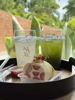 Ayutthaya cafe in the middle of a green rice field. Go try it. The crepe cake is delicious. Not too sweet, not too greasy. There are many cakes to choose from. As for drinks, try the yuzu soda. It's refreshing. There are chic photo corners. If you go during this time, you'll see green rice fields. It's pleasing to the eyes and ears. It's perfect for a relaxing day. There's a parking lot across the street, very convenient. Naya Cafe - NAYA Cafe Ayutthaya #cafe #Ayutthaya cafe #cafe #Ayutthaya #get a discount without relying on luck