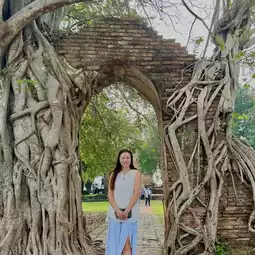 🎈Wat Phra Ngam, Khlong Srabue At the entrance of the temple, the gate covered with Bodhi trees is an ancient archway that is no less than 100 years old. This gate is famously known as the Gate of Time. When walking through it, it is like walking from the present world into the past. This gate is also a filming location for a famous drama. Currently, it is a check-in point where tourists who visit Ayutthaya come to take check-in photos. Inside Wat Phra Ngam, there is also the main pagoda, which is an octagonal pagoda in the style of early Ayutthaya architecture.