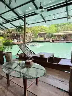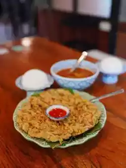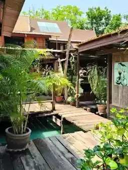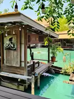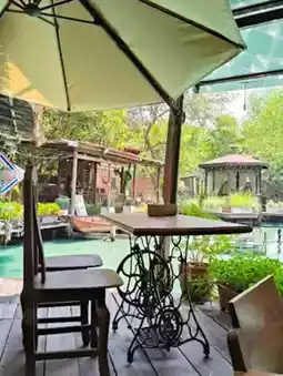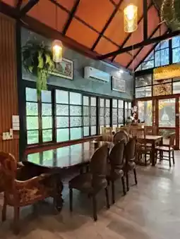 😗 Ayutthaya Retreat is a restaurant with a nice atmosphere located on the riverside in Phra Nakhon Si Ayutthaya Province. There are many types of food to choose from, including Thai food, seafood, and international food. The restaurant's recommended menu includes large grilled river prawns with firm meat, served with delicious dipping sauce, fried soft-fleshed fish with garlic, crispy outside and soft inside, spicy tom yum kung, and pineapple fried rice served in a pineapple. In addition to savory food, the restaurant also offers a variety of desserts and drinks.